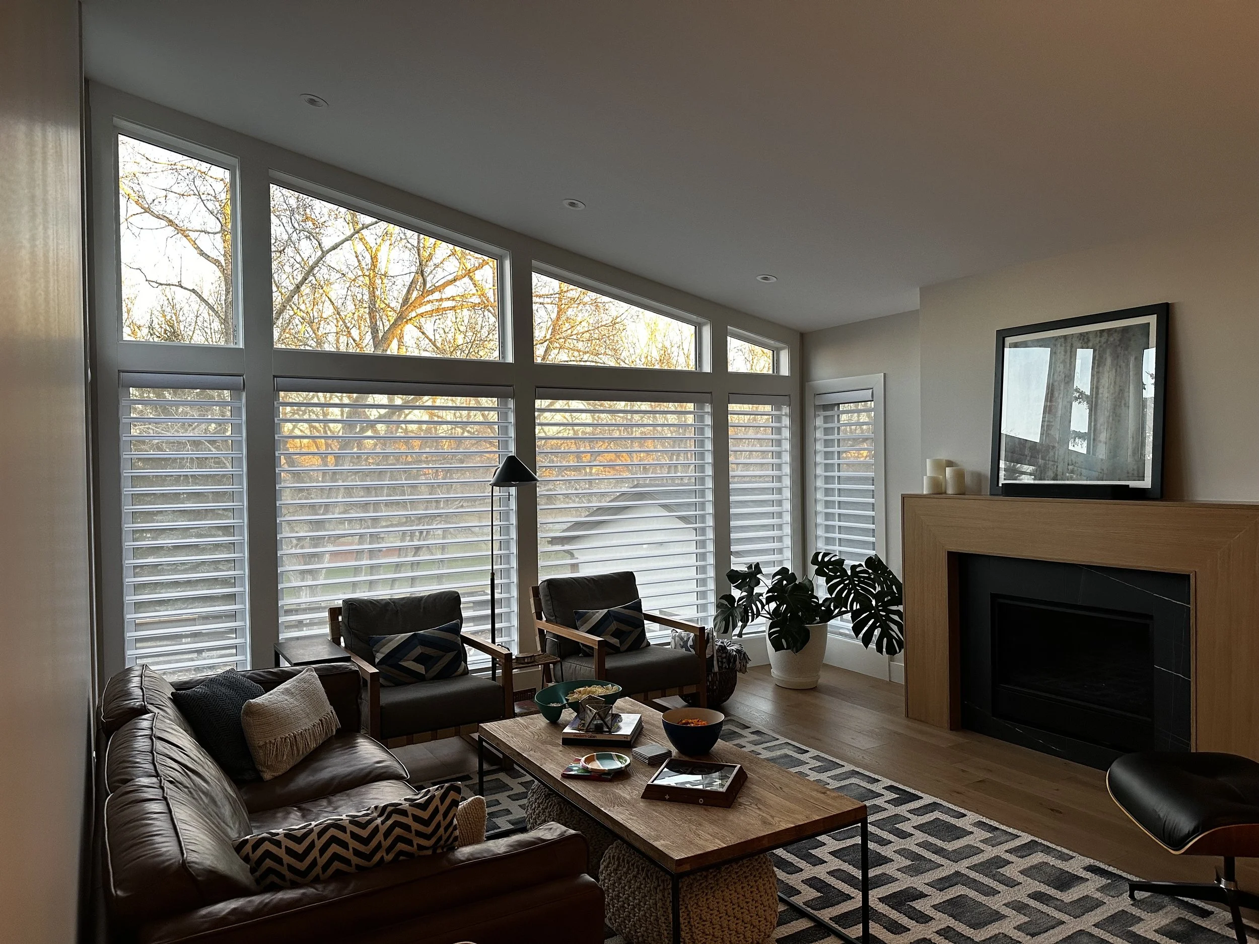 Vaulted great room featuring large windows that capture views of the city and park directly from the rear of the house